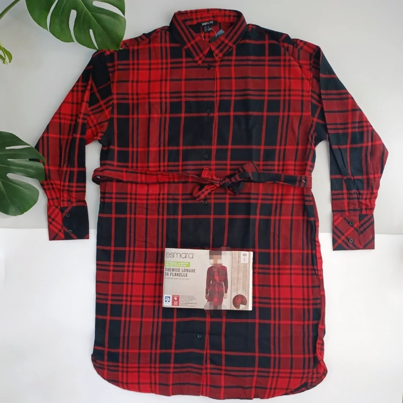 مانتو یا شومیز بلند چهارخانه اسمارا ESMARA نخی چهارفصل قرمز سایزبندی از 36 تا 44 رنگ سفید مشکی و آبی هم موجوده قد 90