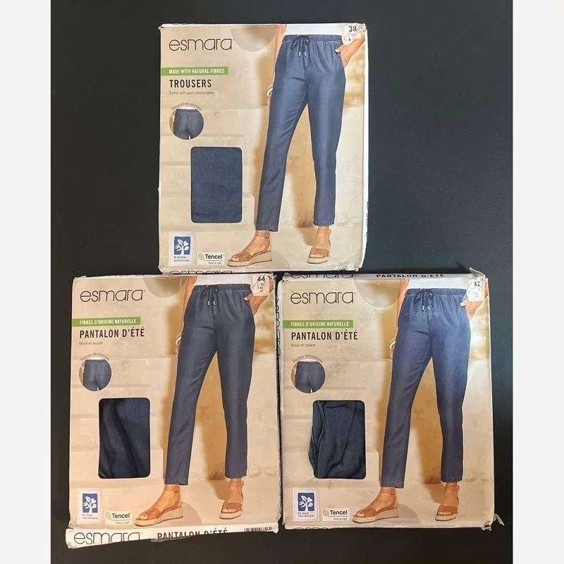 شلوارک یا شلوار اسلش سه ربع پاییزه از برند اسمارا esmara سایز 44 و 46 بنفش و زرد و طرح دار موجوده