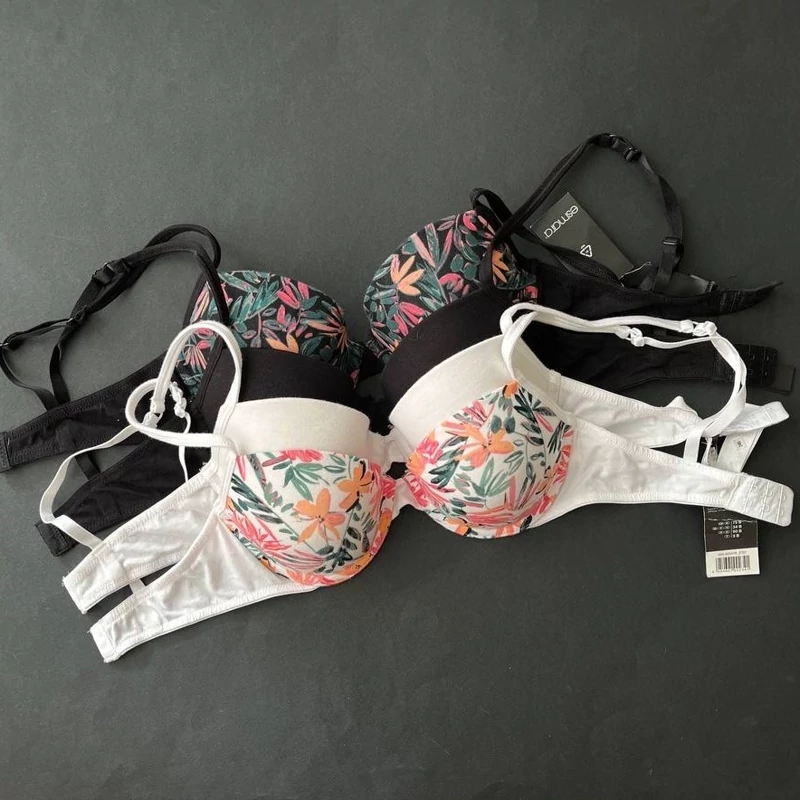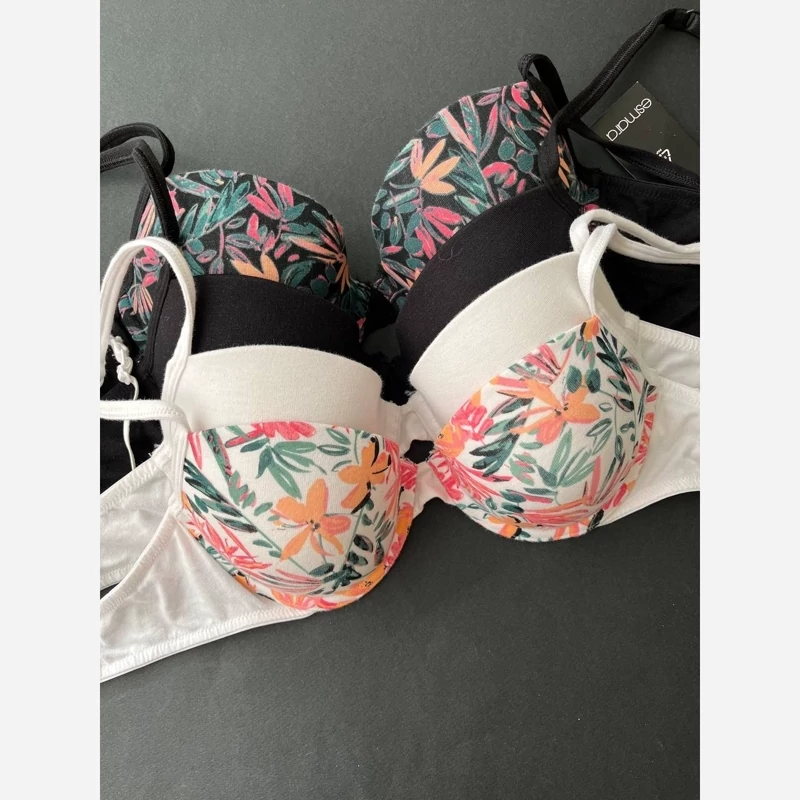 سوتین اسمارا ESMARA سفید ساده و سفید طرح دار فنردار جنس عالی کاپ نازک سایز 75B و 70B