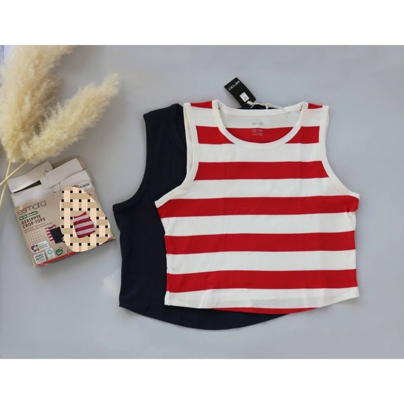 تاپ کراپ از برند اسمارا ESMARA سرمه ای و قرمز راه راه و زرد و قرمز و آبی و سفید سایز 44 و 46 و سایز 48 و 50