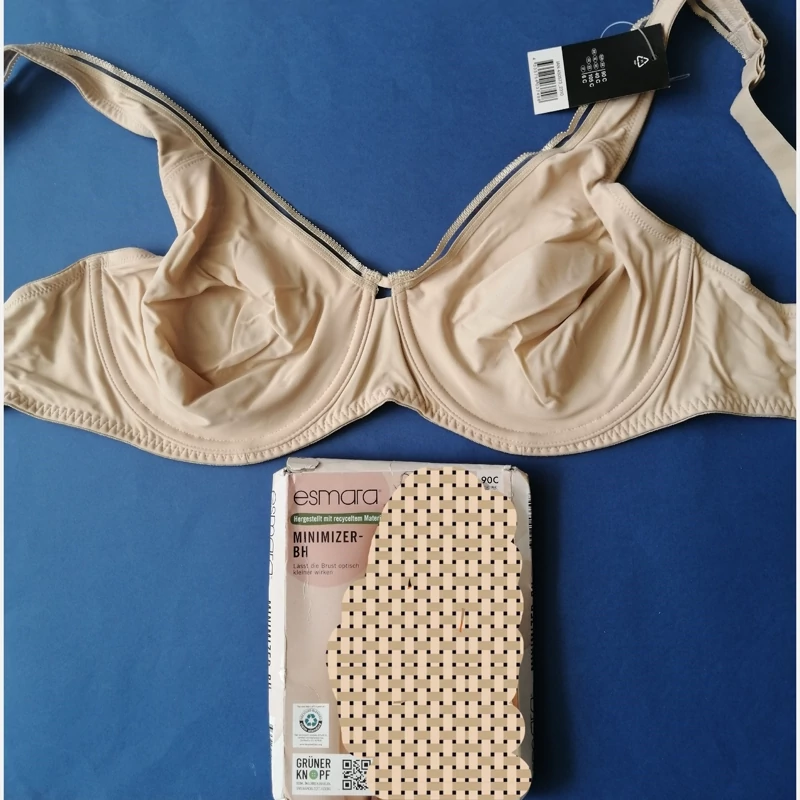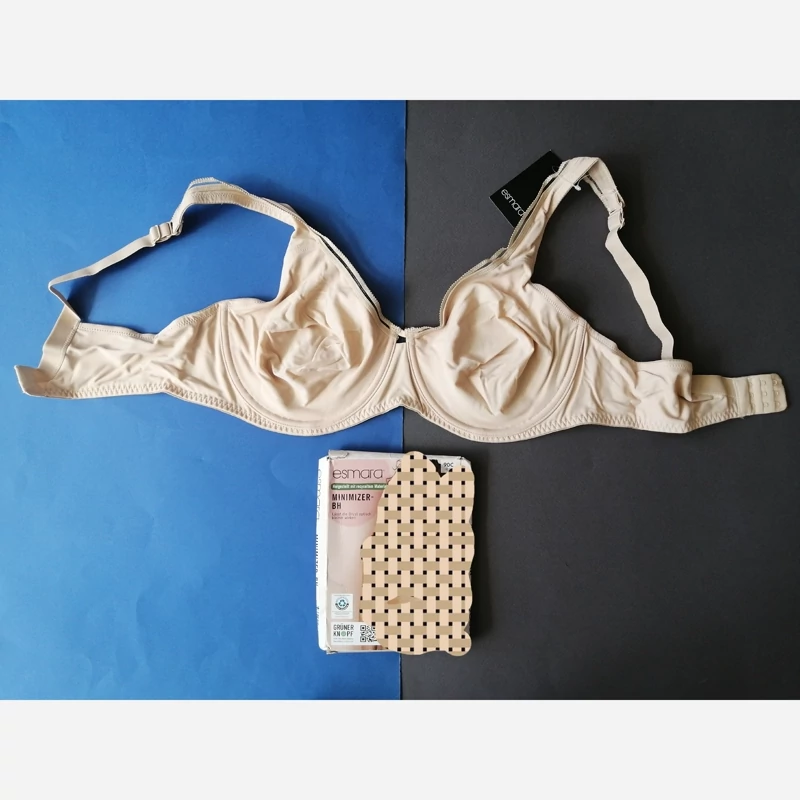 سوتین اسمارا esmara رنگ کرم با کاپ دولایه مینی مایزر فنردار جنس عالی سایز 95E و 90C