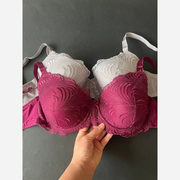 سوتین از برند جورج George سایز 85C و 80C و 75C و 85D و 85E و 75D و 75E و 85B طوسی و بنفش فنردار با کاپ نازک و بدون پوشاپ