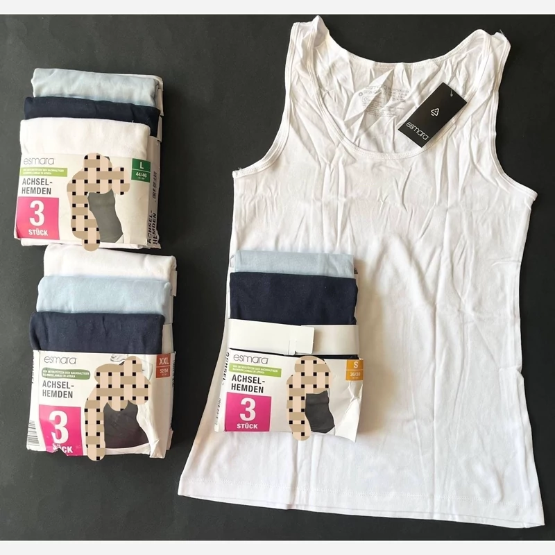 تاپ رکابی نخی از برند اسمارا ESMARA سرمه ای و آبی و سفید و مشکی و صورتی سایز 32/34 و 36/38 و 40/42 و 44/46 و 48/50