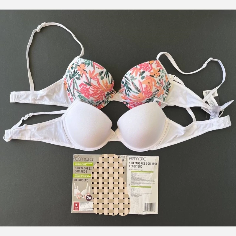 سوتین اسمارا ESMARA سفید ساده و سفید طرح دار فنردار جنس عالی کاپ نازک سایز 75B و 70B