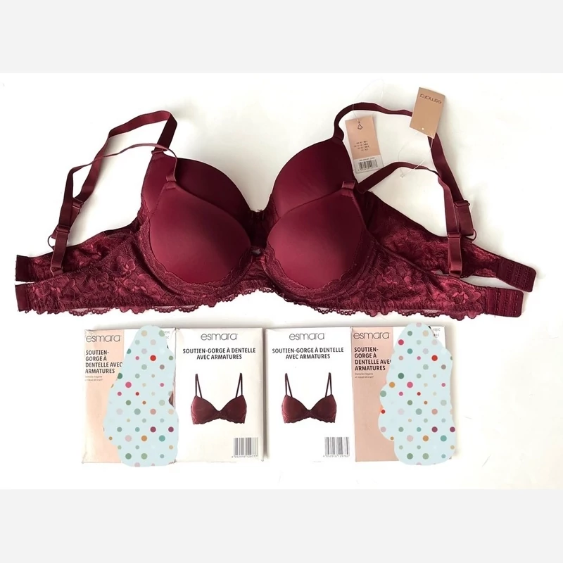 سوتین اسمارا esmara رنگ زرشکی کاپدار فنردار سایز 85C و 90C