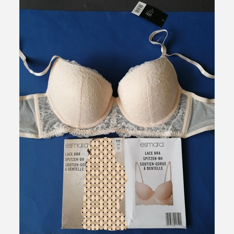 سوتین برند اسمارا esmara رنگ کرم کاپدار فنردار دانتل جنس عالی سایز 80B پکدار