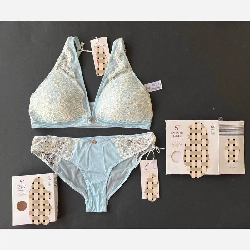 سوتین برند SYLVIE MEIS جنس عالی رنگ آبی روشن 80B و 80C و 85B و 85C شورت ست سایز 36 و 38 و 40 و 42 و 44 و 46 موجوده
